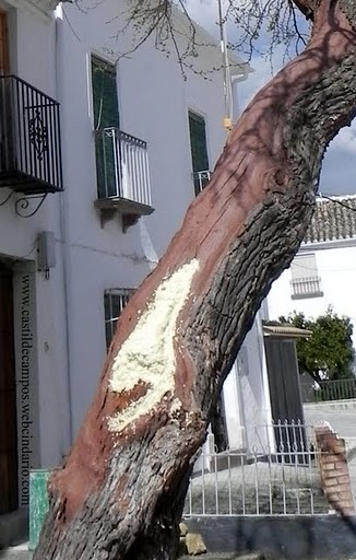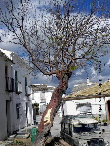 -La morera de la Calle Arco, la única que queda en el pueblo, y la que ha alimentado a los gusanos de seda de generaciones y generaciones de campeños, está herida de muerte. Según nos comenta el Alcalde, tiene el tronco medio podrido y las raíces medio secas. La inclinación que presenta podría ser prueba de ello. Hace unos días recibía un tratamiento por personal especializado, para intentar salvarla. El tiempo dirá si ha tenido efecto. No sería mala idea plantar otra al lado, para que se fuera criando, por si llega la hora de su fallecimiento.