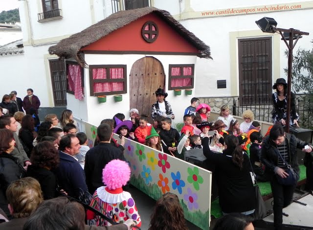 -El pasado domingo 6 de marzo, el Ayuntamiento de Castil de Campos intentó realizar el pasacalles de disfraces con el que se acostumbra a celebrar el Carnaval durante los últimos años. Y decimos intentó, porque por un error de cálculo, la carroza que se preparó para el pasacalles, de considerables dimensiones, nada mas salir de la puerta del Ayuntamiento, se quedó atascada entre la casa rectoral y la pescadería. Hasta que al final pudo salir salteándo coches Plaza del Rosario abajo, donde se tuvieron que bajar los niños y niñas, ante la dificultad de seguir su recorrido. La fiesta continuó en el local de la Peña, donde se infló un colchón hinchable, para los mas pequeños.