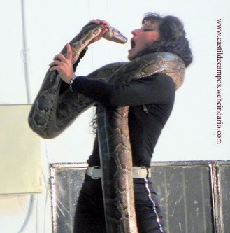 ![]() Faquir tomando algo calentito, y domadora de serpientes con algo de apetito - Actuación en la peña del antiguo Circo California el pasado viernes 6 de mayo de 2011 - Fotos: Máximo Ruiz-Burruecos