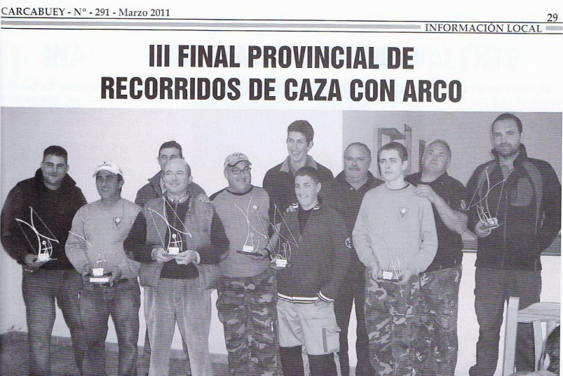 -Nuestro paisano David Páez Moral, integrante del Club de caza y tiro con arco Karkabul, ocupó el primer puesto de la clasificación en la categoría de asistido senior, el pasado 13 de marzo en la III Final Provincial de recorridos de caza con arco, celebrada en el paraje de "Casilla Loma". (Información y recorte de prensa procedente del periódico Carcabuey - Marzo de 2011, n 291, pág.29 - David Páez aparece en la foto el segundo por la izquierda).