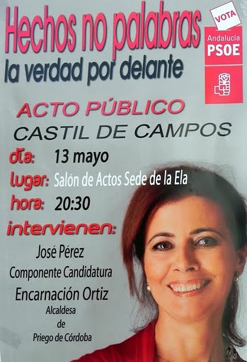 -Las candidaturas a las elecciones municipales del 22 de mayo al Ayuntamiento de Priego de Córdoba, contarán con tres representantes campeños. José Pérez Expósito figura en el puesto nº9 de la lista presentada por el PSOE, y Pedro Felipe Perálvarez Osuna y Antonio Urbano Montes, aparecen en el puesto décimo tercero y décimo noveno de la lista del PP, respectivamente. A continuación se insertan las fotos de citados candidatos aparecidas para la ocasión en los medios de comunicación.