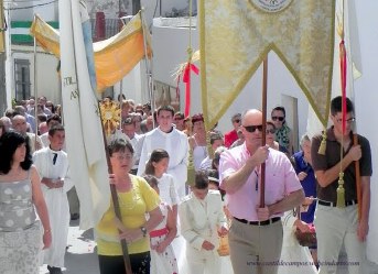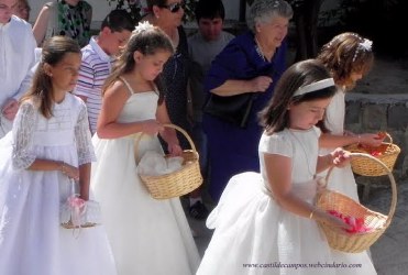 -Domingo de Ramos soleado. Los actos para celebrar el Domingo de Ramos en Castil de Campos comenzaron a las 10,30 horas del 17 de abril frente al local de La Peña, con la bendición de las ramas de olivo por el párroco de la localidad, Don Antonio Budia Sabán. Ramas que llevan en las manos los fieles para rememorar el pasaje bíblico en el que Jesús, montado en una borriquilla, entró en Jerusalén en medio de una multitud que lo aclamaba como el Hijo de Dios. A continuación, y tras las oportunas lecturas al respecto, la imagen de Jesús en la borriquita inició su recorrido por la Calle Carrera a hombros de los niños y niñas que el 7 de mayo hacen la Primera Comunión, hasta entrar en la Iglesia. Finalizada la procesión, se celebró una Misa en la que se dió lectura al relato de la Pasión de Jesús, y en el que para dar una mayor fuerza a la narración, Don Antonio Budia se alternó en la lectura con el Hermano Mayor de la Hermandad de Ntro. Padre Jesús Nazareno, Domingo Galera, haciendo las veces de narrador y Jesús, respectivamente. La ceremonia religiosa finalizó con un besamanos a la Virgen de los Dolores, en el que lo recaudado se destinará a las obras de la Iglesia. A continuación insertamos algunas fotos de estos actos.