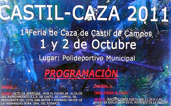 -La Asociación Cordobesa de Agricultores del Olivar (A.C.A.) de Castil de Campos, comunica que los cursos de caza y pesca concedidos por la Junta de Andalucía se realizarán durante el próximo mes de abril según el siguiente calendario: Curso de Caza, 9, 10, 16 y 17 de abril, de 8 a 14 horas en el Bar Muñoz, y Curso de Pesca, 9, 10, 16 y 17 de abril de 16 a 22 h., también en el Bar Muñoz. Los alumnos inscritos deben aportar fotocopia del DNI, y rellenar y firmar la inscripción. El precio del curso es de 55€ por alumno y se pagará al formalizar la inscripción, siendo el plazo hasta el 25 de marzo. Quedan disponibles 2 plazas para el curso de caza y 1 para el curso de pesca. Tfnos.: 957 556 034 ó 636 842 633. Colaboran: Asociación Deportiva de Caza "Coto San Antón", Bar Muñoz, y Seguros Galera & Luque.