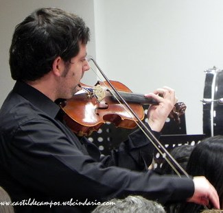 ![]() Mario Cubero al violín, y componentes de la banda de música de Castil de Campos al finalizar el Concierto, con Alberto Cubero Moreno