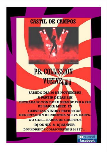 -La Pizzería y Bocatería Collission de Castil de Campos abrió de nuevo sus puertas durante una nueva temporada el pasado 26 de noviembre a las diez de la noche, con una pequeña fiesta de apertura en la que se pudo desgustar su nueva carta, animada por go gos y por los DJ locales Onnix y Sanper.