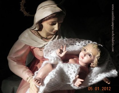 La Navidad 2011 se iniciaba con el Primer Concurso de Cuentos Infantiles Navideños, organizado por la Entidad Local Autónoma de Castil de Campos, en el que resultó ganadora Elisabeth Muñoz Sánchez con su cuento “El muñeco de nieve”. Nieve que no iba a caer en toda la Navidad, al igual que la preciada lluvia, pues han sido unas Navidades de lo más secas, y en las que el sol ha pegado con fuerza, hasta consumir y arrugar gran parte de las aceitunas, con la buena cosecha que se esperaba. También se organizó por el Ayuntamiento el Primer Concurso de Belenes, para niños/as de hasta 14 años empadronados en Castil de Campos, en el no que hubo ninguna inscripción, quizás debido a las exigentes bases con las que se convocó. Los que no faltaron fueron los Belenes que algunos vecinos y vecinas del pueblo montan todos los años en sus casas, con esmero y con ilusión, como el de Pepa Mérida, que ocupa casi toda una habitación de su casa, con gran cantidad de figuritas y de detalles por ella misma elaborados, o como el que se monta en uno de los laterales de la Iglesia, éste año si acaso, con mayor ternura y maternidad, al aparecer la Virgen con su niño en brazos.
