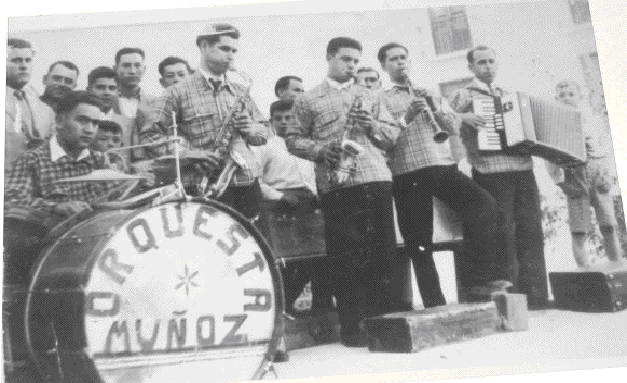 ![]() Orquesta Muñoz de Castil de Campos durante una de sus actuaciones con Justo Muñoz Moral y su saxo en el centro. Foto: Sección Blanco y Negro de la web de Castil de Campos: www.castildecampos.webcindario.com